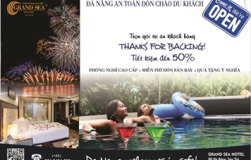 Sau thời gian tạm dừng việc đón khách để cùng cả nước chung tay đẩy lùi Covid-19, từ ngày 23/4/2020, Khách sạn Grand Sea (Đà Nẵng) đã trở lại hoạt động bình thường. Tất cả dịch vụ đều sẵn sàng để phục vụ quý khách. Nhân dịp này, Khách sạn Grand Sea kính gửi đến quý khách gói khuyến mãi thay lời cảm ơn quý khách đã tin tưởng và ủng hộ trong suốt thời gian qua.
